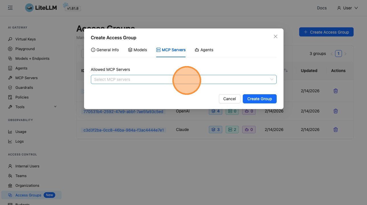 - Unified resource control β One group controls access to models, MCP servers, and agents together