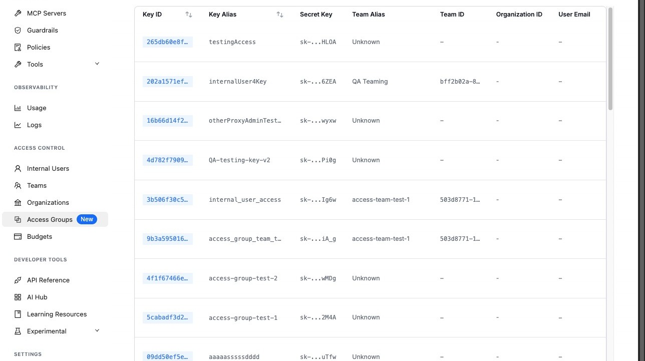 New developers get a key with an Access Group instead of manually configuring models, MCP servers, and agents. Add them to the right team or give them a key with the correct group.