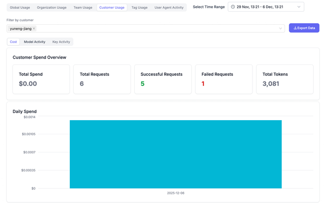 Customer Usage enables you to track spend and usage for individual customers (end users) by passing an ID in your API requests. This allows you to: