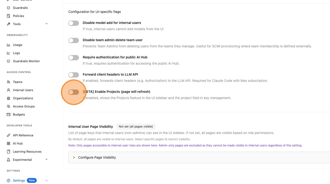 Enable Projects in UI Settings​