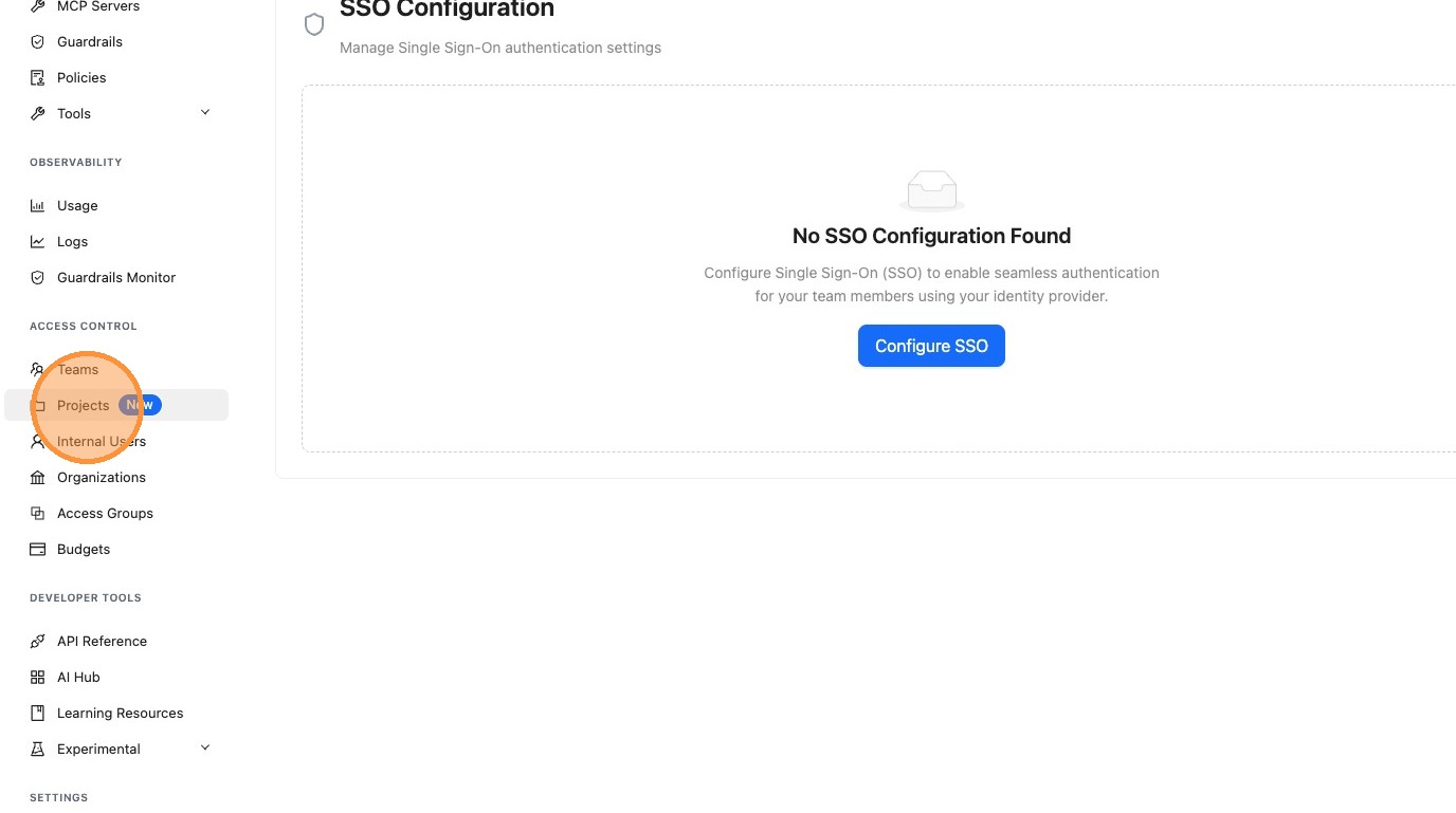 Once enabled, the Projects section will appear in your Admin UI navigation, and you'll be able to create and manage projects.