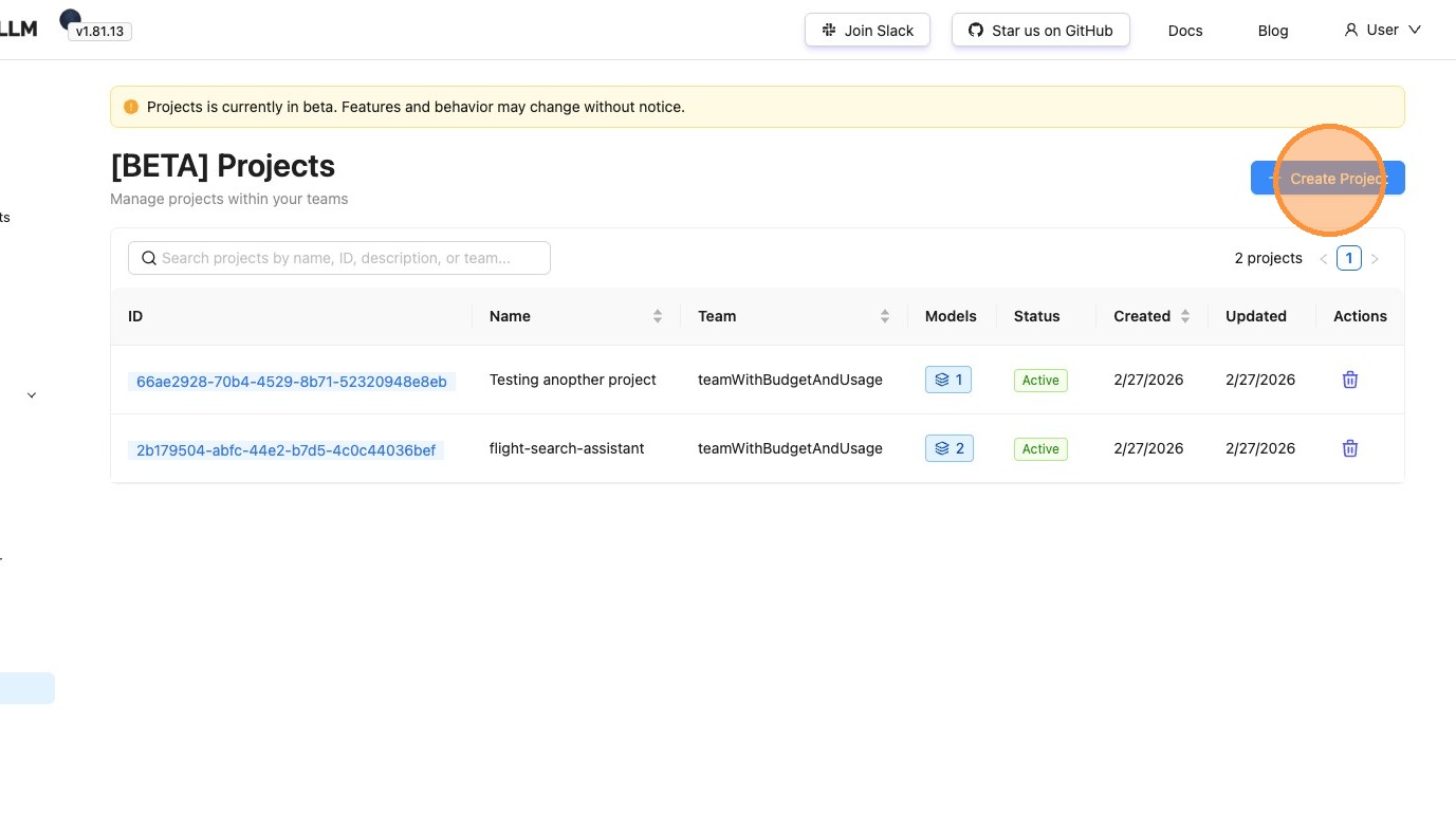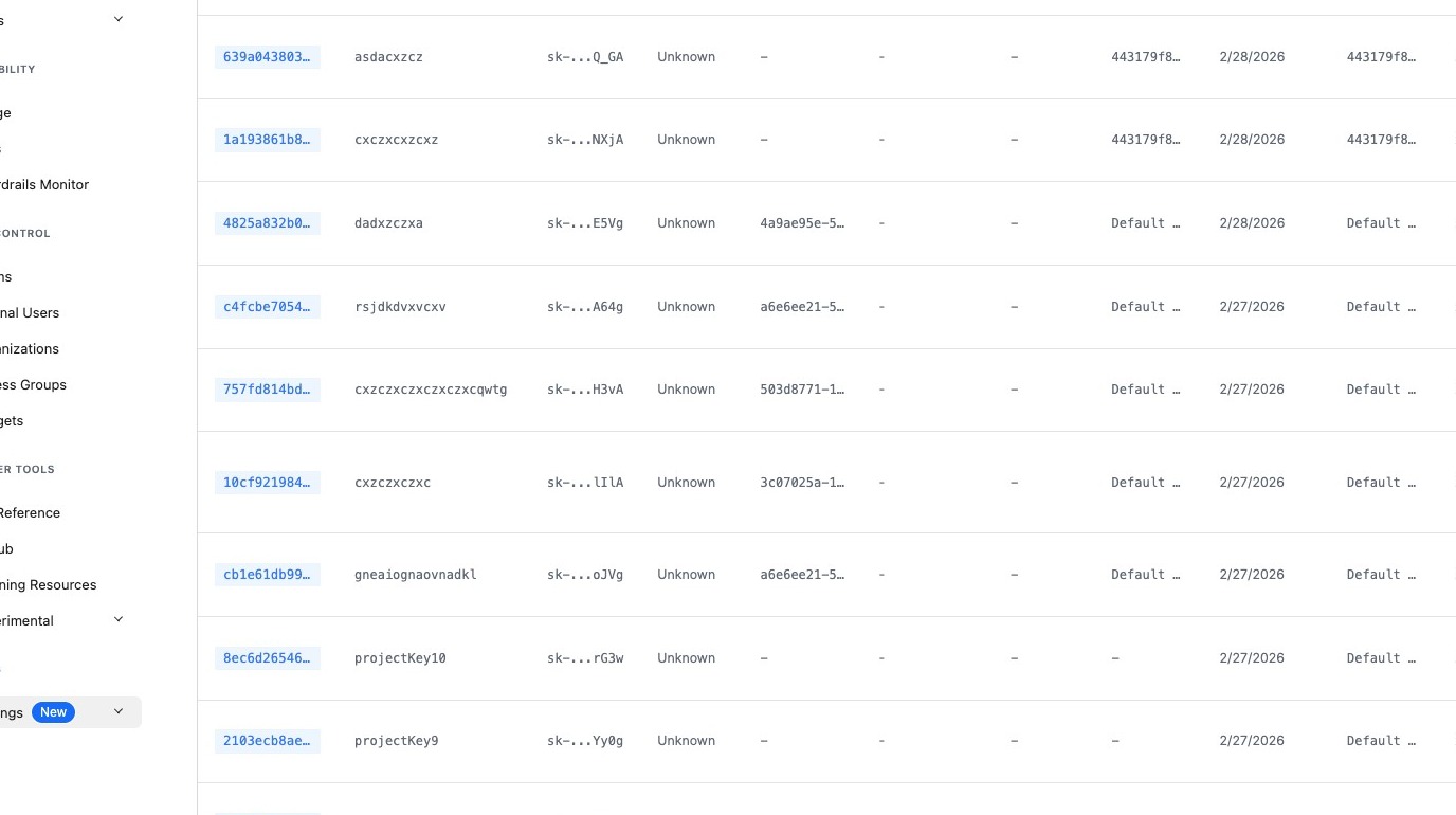 Organize API keys within a team by use case or application. Group related keys together in projects so you can manage budgets, model access, and permissions as a unit instead of individually.
